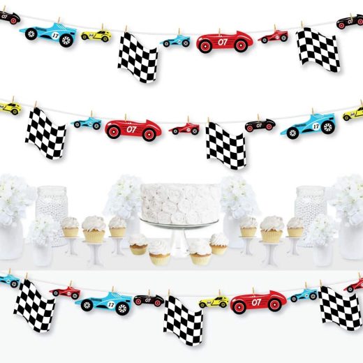 Big Dot of Happiness Letu2019s Go Racing – Racecar – Race Car Birthday Party or Baby Shower DIY Decorations – Clothespin Garland Banner – 44 Pieces