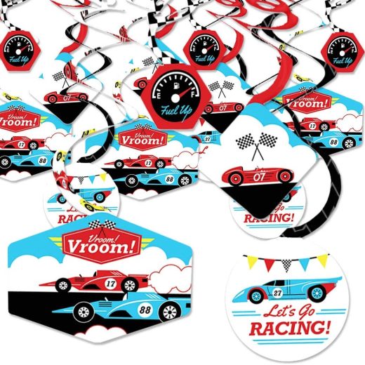 Big Dot of Happiness Letu2019s Go Racing – Racecar – Race Car Birthday Party or Baby Shower Hanging Decor – Party Decoration Swirls – Set of 40