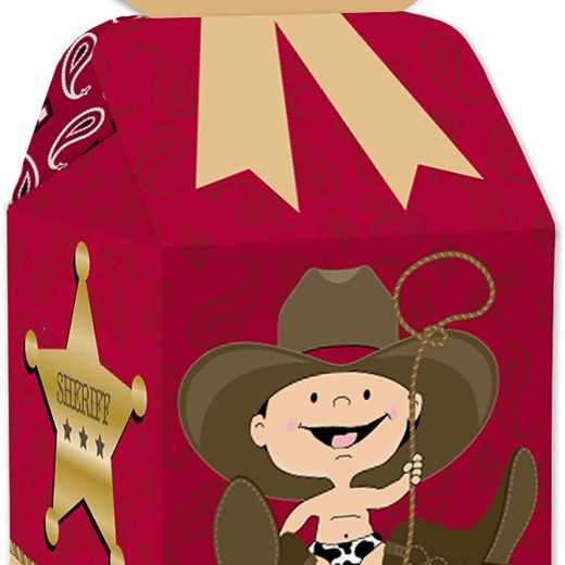 Big Dot of Happiness Little Cowboy – Square Favor Gift Boxes – Western Baby Shower or Birthday Party Bow Boxes – Set of 12
