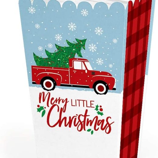 Merry Little Christmas Tree Favor Popcorn Treat Boxes INCLUDES 12 Merry Little Christmas Tree party favor boxes. Merry Little Christmas Tree treat boxes are perfect for any event. The vintage theme is great for a Christmas party. Merry Little Christmas Tree favor popcorn treat boxes SIZE 5.75 inches tall x 3.5 inches square at the top. The unique design and large size makes these 12 retro popcorn boxes a must-have for any Christmas party. POPCORN BOX PARTY SUPPLIES: Merry Little Christmas Tree popcorn boxes will hold a variety of party food. Fill them with sweet treats or salty snacks. Popcorn, caramel corn, candies and other goodies will look amazing on your candy buffet with these vintage favor boxes. PREMIUM PARTY FAVOR BOXES: Merry Little Christmas Tree treat boxes are professionally printed on heavy-duty cardstock paper with a photo-like shine. They are hand-folded and individually inspected, then carefully packaged. Popcorn boxes will arrive flat. Easy assembly is required. MADE IN AMERICA: Merry Little Christmas Tree – Christmas Favor Popcorn Treat Boxes are designed and manufactured at our Wisconsin facility using materials that are Made in America.