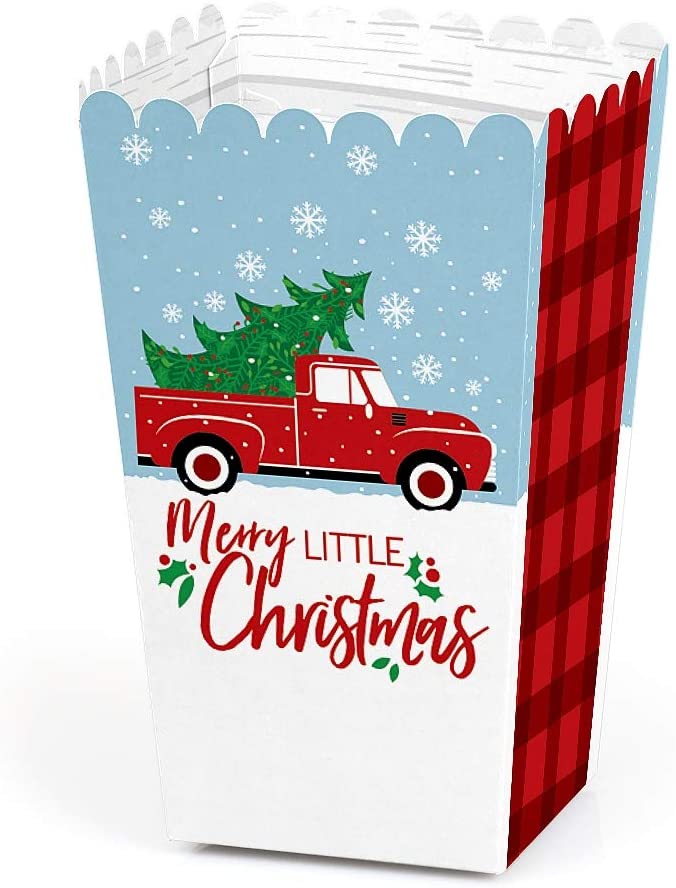 Big Dot of Happiness Merry Little Christmas Tree – Red Truck Christmas Party Favor Popcorn Treat Boxes – Set of 12