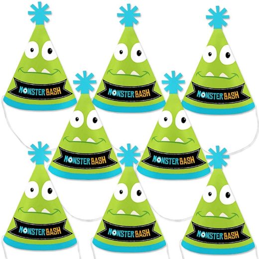 Big Dot of Happiness Monster Bash – Mini Cone Little Monster Birthday Party or Baby Shower Hats – Small Little Party Hats – Set of 8
