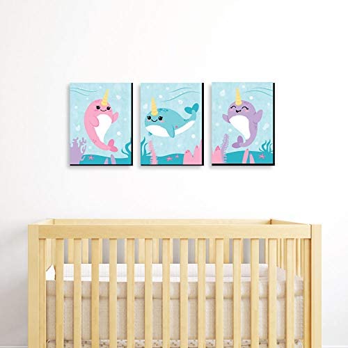 Big Dot of Happiness Narwhal Girl – Under the Sea Nursery Wall Art and Kids Room Decorations – Gift Ideas – 7.5 x 10 inches – Set of 3 Prints