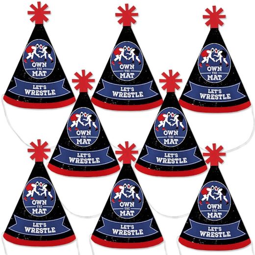 Big Dot of Happiness Own the Mat – Wrestling – Mini Cone Birthday Party or Wrestler Party Hats – Small Little Party Hats – Set of 8