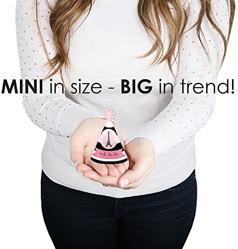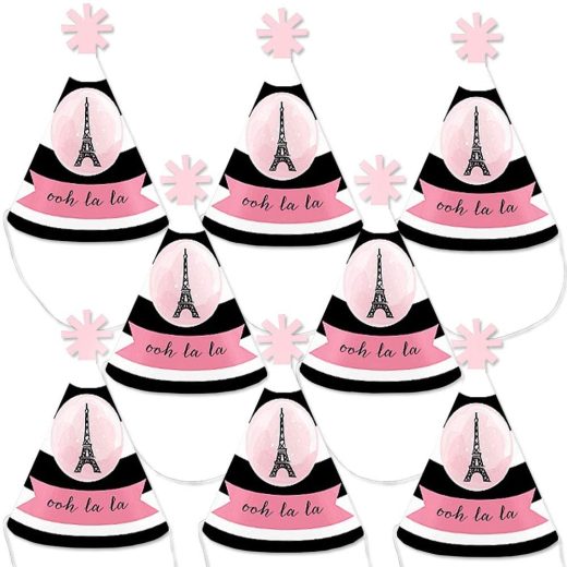 Big Dot of Happiness Paris, Ooh La La – Paris Themed Mini Cone Baby Shower or Birthday Party Hats – Small Little Party Hats – Set of 8