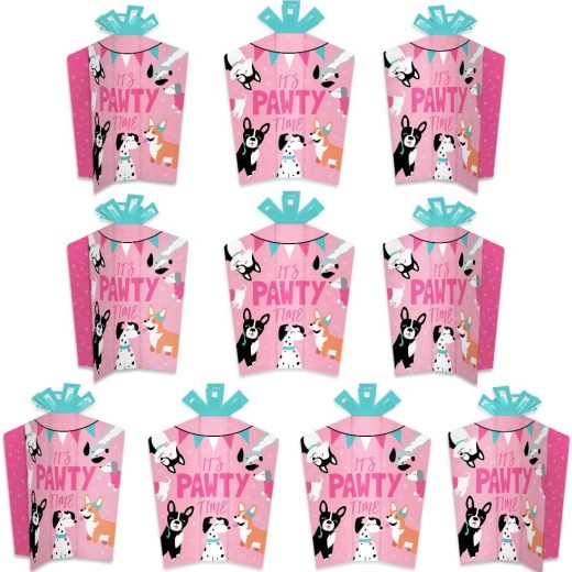 Big Dot of Happiness Pawty Like a Puppy Girl – Table Decorations – Pink Dog Baby Shower or Birthday Party Fold and Flare Centerpieces – 10 Count
