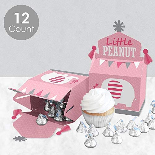 Big Dot of Happiness Pink Elephant – Treat Box Party Favors – Girl Baby Shower or Birthday Party Goodie Gable Boxes – Set of 12