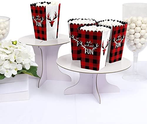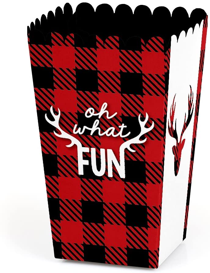 Big Dot of Happiness Prancing Plaid – Christmas and Holiday Buffalo Plaid Party Favor Popcorn Treat Boxes – Set of 12