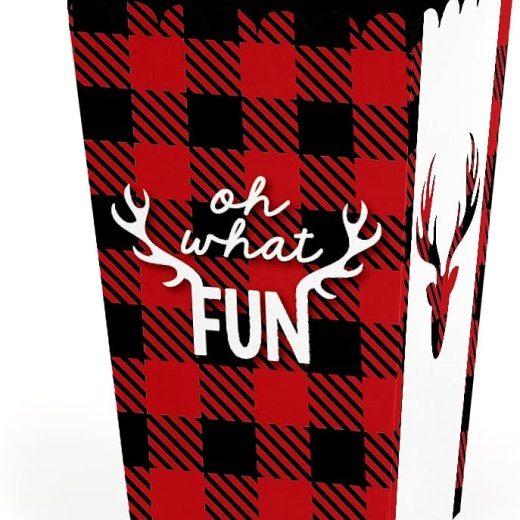 Prancing Plaid Favor Popcorn Treat Boxes INCLUDES 12 Prancing Plaid party favor boxes. Prancing Plaid treat boxes are perfect for any event. The reindeer antler theme is great for a Christmas party. Prancing Plaid party favor popcorn treat boxes SIZE 5.75 inches tall x 3.5 inches square at the top. The unique design and large size makes these 12 lumberjack popcorn boxes a must-have for any Christmas party. POPCORN BOX PARTY SUPPLIES: Prancing Plaid popcorn boxes will hold a variety of party food. Fill them with sweet treats or salty snacks. Popcorn, caramel corn, candies and other goodies will look amazing on your candy buffet with these Christmas & Holiday Buffalo Plaid favor boxes. PREMIUM PARTY FAVOR BOXES: Prancing Plaid party treat boxes are professionally printed on heavy-duty cardstock paper with a photo-like shine. They are hand-folded and individually inspected, then carefully packaged. Popcorn boxes will arrive flat. Easy assembly is required. MADE IN AMERICA: Prancing Plaid – Christmas & Holiday Buffalo Plaid Party Favor Popcorn Treat Boxes are designed and manufactured at our Wisconsin facility using materials that are Made in America.