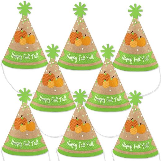 Big Dot of Happiness Pumpkin Patch – Mini Cone Fall, Halloween or Thanksgiving Party Hats – Small Little Party Hats – Set of 8