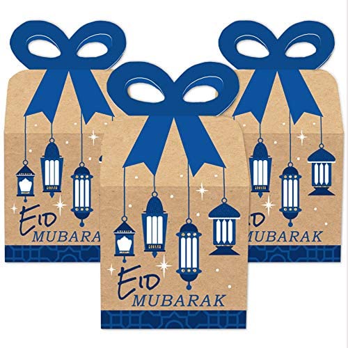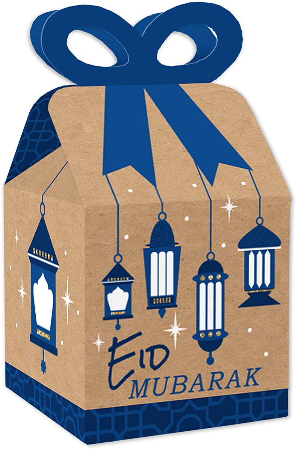 Big Dot of Happiness Ramadan – Square Favor Gift Boxes – Eid Mubarak Party Bow Boxes – Set of 12