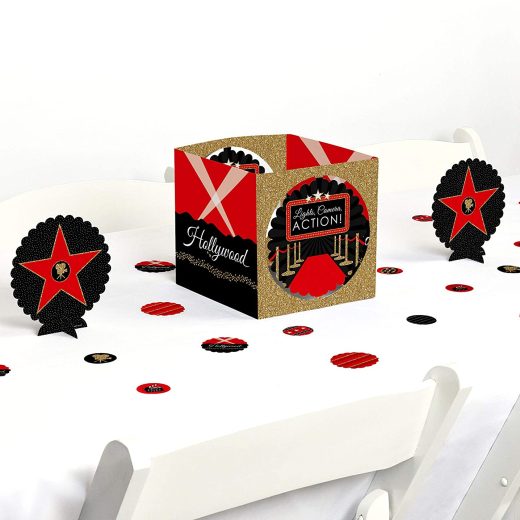 Big Dot of Happiness Red Carpet Hollywood – Movie Night Party Centerpiece and Table Decoration Kit