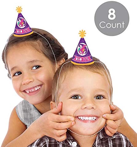 Big Dot of Happiness Roar Dinosaur Girl – Mini Cone Dino Mite T-Rex Baby Shower or Birthday Party Hats – Small Little Party Hats – Set of 8