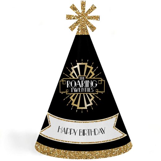 Everyone will be ready to celebrate the guest of honor’s birthday when wearing a Roaring 20’s party hat. This set of 8 (Standard Size) birthday party hats is a great addition to your event and is sure to get everyone smiling – especially the guest of honor! Each Roaring 20’s – Cone Happy Birthday Party Hats for Kids and Adults perfectly themed and has a festive star at the top. These party hats even come with a “Happy Birthday” printed on them! Be sure to have your camera ready because this Roaring 20’s Birthday party hats are going to give you some great photos!