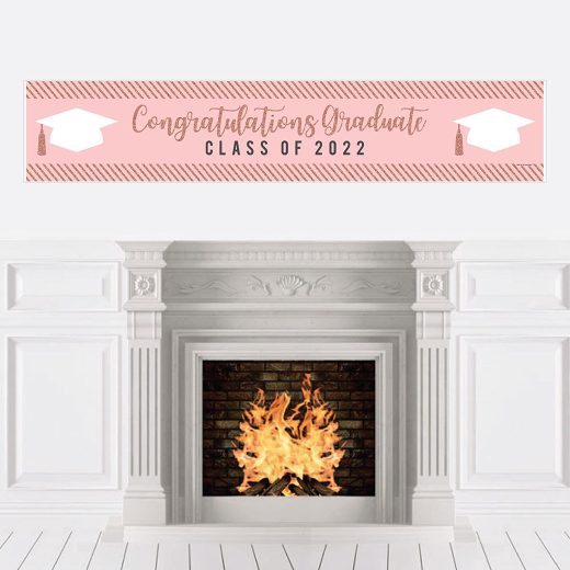 Big Dot of Happiness Rose Gold Grad – 2022 Graduation Party Decorations Party Banner