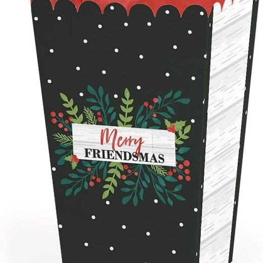 Rustic Merry Friendsmas Favor Popcorn Treat Boxes INCLUDES 12 Rustic Merry Friendsmas party favor boxes. Rustic Merry Friendsmas treat boxes are perfect for any event. The friends theme is great for a Friends Christmas party. Rustic Merry Friendsmas favor popcorn treat boxes SIZE 5.75 inches tall x 3.5 inches square at the top. The unique design and large size makes these 12 best friends popcorn boxes a must-have for any Friends Christmas party. POPCORN BOX PARTY SUPPLIES: Rustic Merry Friendsmas popcorn boxes will hold a variety of party food. Fill them with sweet treats or salty snacks. Popcorn, caramel corn, candies and other goodies will look amazing on your candy buffet with these rustic favor boxes. PREMIUM PARTY FAVOR BOXES: Rustic Merry Friendsmas treat boxes are professionally printed on heavy-duty cardstock paper with a photo-like shine. They are hand-folded and individually inspected, then carefully packaged. Popcorn boxes will arrive flat. Easy assembly is required. MADE IN AMERICA: Rustic Merry Friendsmas – Friends Christmas Favor Popcorn Treat Boxes are designed and manufactured at our Wisconsin facility using materials that are Made in America.
