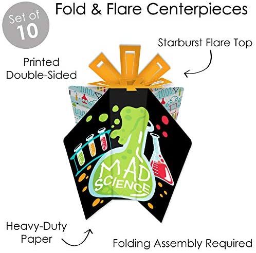 Big Dot of Happiness Scientist Lab – Table Decorations – Mad Science Baby Shower or Birthday Party Fold and Flare Centerpieces – 10 Count