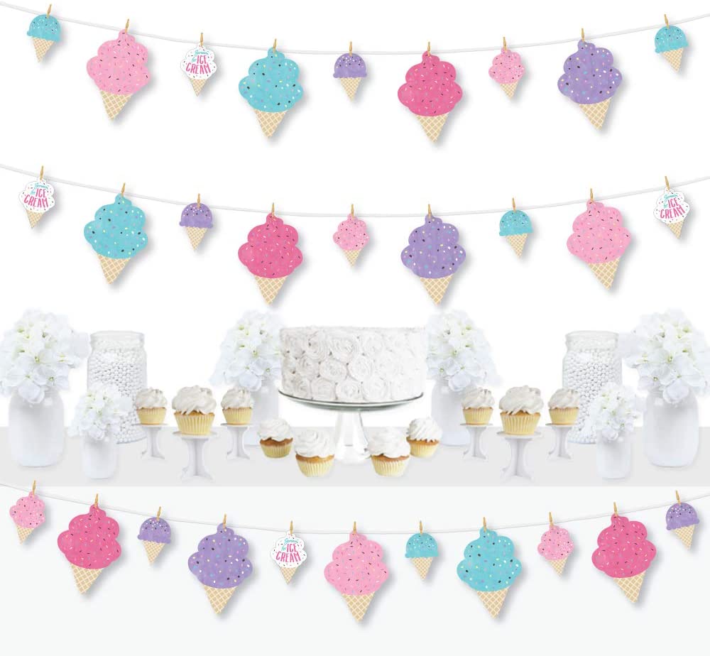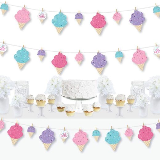 Big Dot of Happiness Scoop Up the Fun – Ice Cream – Sprinkles Party DIY Decorations – Clothespin Garland Banner – 44 Pieces