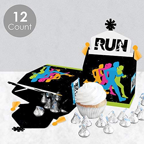 Big Dot of Happiness Set the Pace – Running – Treat Box Party Favors – Track, Cross Country or Marathon Party Goodie Gable Boxes – Set of 12