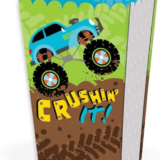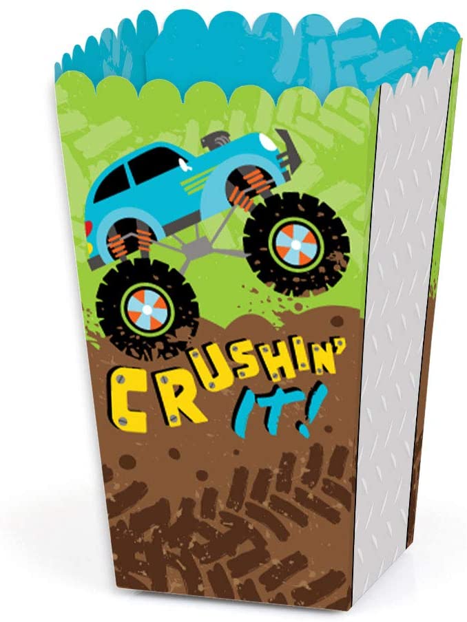 Big Dot of Happiness Smash and Crash – Monster Truck – Boy Birthday Party Favor Popcorn Treat Boxes – Set of 12