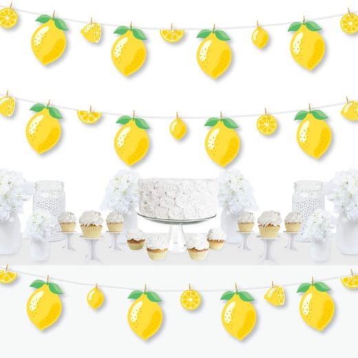 Big Dot of Happiness So Fresh – Lemon – Citrus Lemonade Party DIY Decorations – Clothespin Garland Banner – 44 Pieces