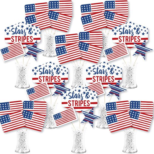 Big Dot of Happiness Stars and Stripes – Memorial Day, 4th of July and Labor Day USA Patriotic Party Centerpiece Sticks – Showstopper Table Toppers – 35 Pieces