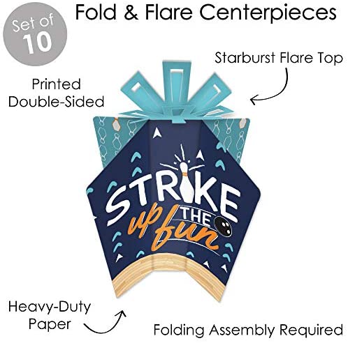 Big Dot of Happiness Strike Up the Fun – Bowling – Table Decorations – Birthday Party or Baby Shower Fold and Flare Centerpieces – 10 Count