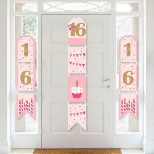 Big Dot of Happiness Sweet 16 – Hanging Vertical Paper Door Banners – 16th Birthday Party Wall Decoration Kit – Indoor Door Decor