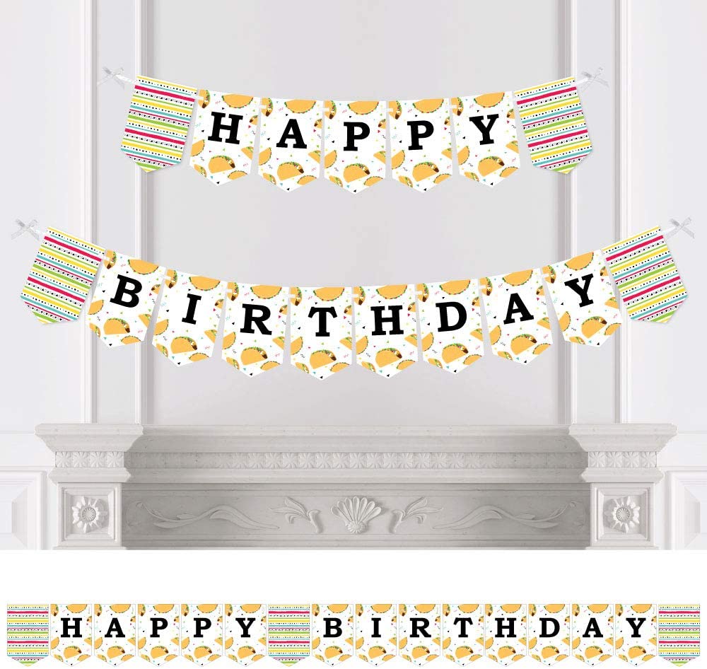 Big Dot of Happiness Taco u2018Bout Fun – Mexican Fiesta Birthday Party Bunting Banner – Birthday Party Decorations – Happy Birthday