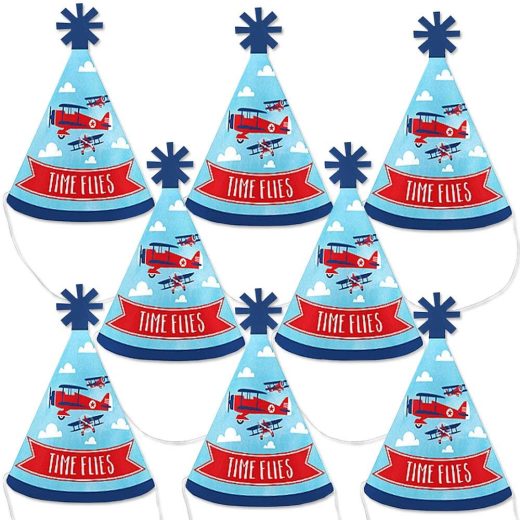 Big Dot of Happiness Taking Flight – Airplane – Mini Cone Vintage Plane Baby Shower or Birthday Party Hats – Small Little Party Hats – Set of 8