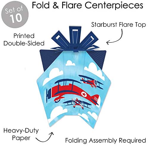 Big Dot of Happiness Taking Flight – Airplane – Table Decorations – Vintage Plane Baby Shower or Birthday Party Fold and Flare Centerpieces – 10 Count