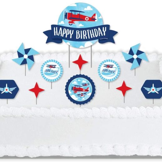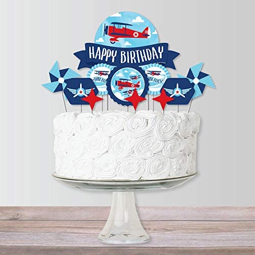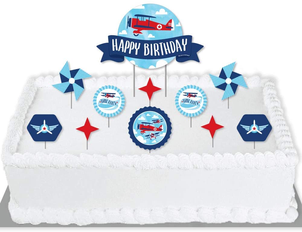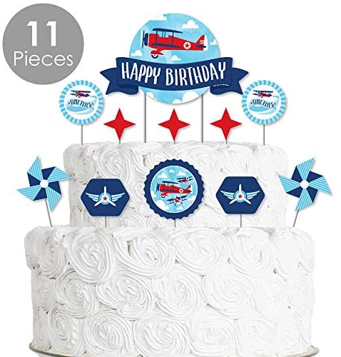 Big Dot of Happiness Taking Flight – Airplane – Vintage Plane Birthday Party Cake Decorating Kit – Happy Birthday Cake Topper Set – 11 Pieces