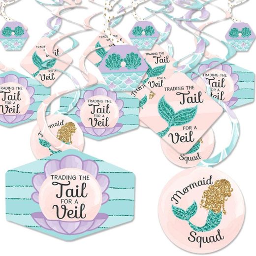 Big Dot of Happiness Trading The Tail for a Veil – Mermaid Bachelorette or Bridal Shower Hanging Decor – Party Decoration Swirls – Set of 40
