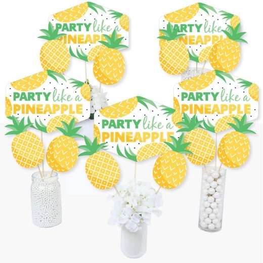 Big Dot of Happiness Tropical Pineapple – Summer Party Centerpiece Sticks – Table Toppers – Set of 15
