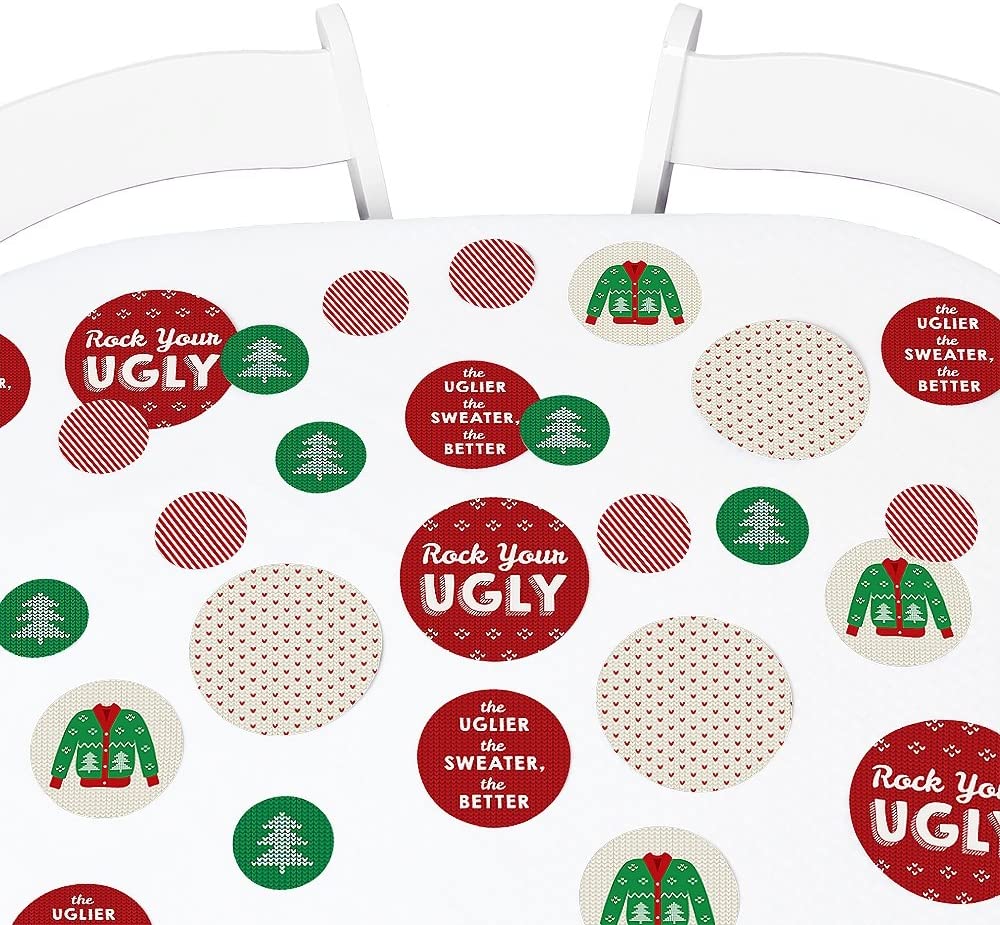 Big Dot of Happiness Ugly Sweater – Christmas Party Giant Circle Confetti – Holiday Party Decorations – Large Confetti 27 Count
