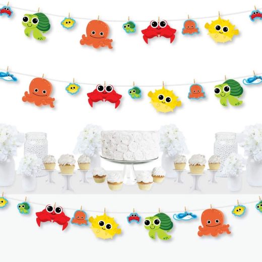 Big Dot of Happiness Under the Sea Critters – Baby Shower or Birthday Party DIY Decorations – Clothespin Garland Banner – 44 Pieces