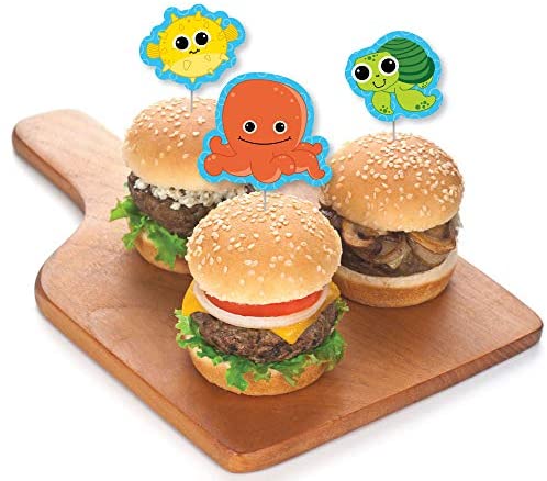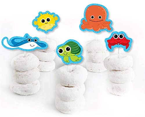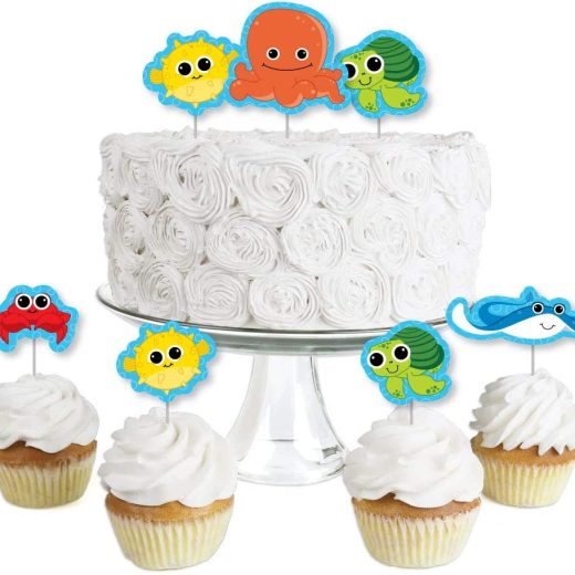 Big Dot of Happiness Under the Sea Critters – Dessert Cupcake Toppers – Baby Shower or Birthday Party Clear Treat Picks – Set of 24