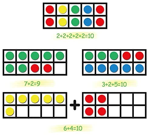 Learn Math with Fun – The colorful counters and frame is a funny way to let little kids learn the concept of number. Its also helpful in getting children to practice the using different numbers to make a ten Design for Little Hands – Design with thick foam and large size, it’s easy for kids to manipulate. Strong magnet of this ten frame set allows hand-held display of learning result Valuable Pack – This set includes 4 big magnetic ten-frame trays, 44 colorful counters, 2 plus and 2 minus, a drawstring storage bag comes as bonus for easily storage Must-have Math Tool – A must-have math tool for kindergarten and first grade classroom, to give kids a visual and kinesthetic approach to addition and subtraction Not Only for Math – In addition to beginning counting, teachers can also use this ten frame set to count team points, work towards classroom goals, etc.