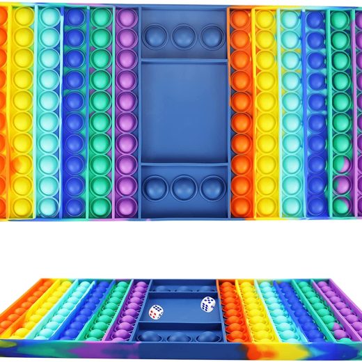 Lets Enjoy The Happy Time From Now On!!! Simple Game Rules: How To Play A: 1. Players decide who starts by playing throw dice. 2. Players take turn pressing any number of raised bubbles in a single row. 3. Each player can press one or many pieces of bubbles at a time(they must be connected, must press the same line of pieces at a time). 4. Whoever presses the last bubble loses the round. Loser! Then flip it over and start again. Endless fun endless joy! Complex Game Rules: How To Play B: 1. A player throw dice first, and if throws 6 then the other player push down 6 pops. 2. And the other way round 3. The player who presses down the last pop loses the round, and need to push the middle big pop, similarly, it will win three games in five rounds. Play C… Play D… Play E.. You can DIY your own rules to battle with others. Product Information: Material: Silicone Size: 320mm x 180mm x 15mm Stytle: Colorful Chess Board Package Includes: 1 x Huge/Big Chessboard Popper Fidget 2 x Dice Features: For All Ages: Games that children, adults and the elderly can play. Amazing Gift For Everyone: Designed with bright colors and pleasant sounds is sure to satisfy any child! Relieve Stress: Help relieve stress and restore mood, it is a perfect home/office essential whenever you feel bored. Portable: Design with compact size, make it easy to carry. Easy to clean: Reusable and washable, keep the pop clean, let your child grow up healthy.
