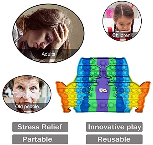 Improved Design Let Players Battle – Take Turns Pressing Down Pop Based On Any Number Of Dice The Opponent Throws,The last one to press the bubble will be the winner/loser.The rules of the game can be decided by yourself! Pop Fidget Toy Can Be A Desktop Interactive Game! Anxiety & Stress ReliefIt’ S A Great Sensory Dinosaur Toys Fidget Toy For not only used as fidget toy when you are alone,Big pop it chess game board to batte with friends, family. Interactive Design Makes It Easier For People To Release Pressure Through Games And Effectively Help To Be Decompressed. High-quality MaterialThis pop fidget toy for anxiety is made of premium silicone material, which is soft and comfortable when touching. It is washable, durable, and can be repeatedly used for a long time. Intelligent Board GameIt Is An Exquisite Racing Game. Players Take Turns Pressing Down Any Number Of Mice They Wish In A Single Row. The Player Who Presses Down The Last Mouse Loses. The Toy Good For Intelligence Development! Pop Bubble Push Is A Board Game That Can Exercise ChildrenS Mathematical Thinking, Reasoning Strategy, Mental Arithmetic, Focus,Logical Thinking And Fine Motor Skills. Perfect Gift ChoiceCan not only relieve stress, but also train childrens basic mathematical knowledge. the bubble dinosaur toy with wide-use, it also can be a coaster, frisbee. Can be reused and cleaned. The perfect gift for kids, students, friends, family.