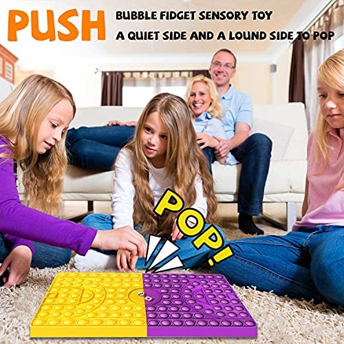 Big Push Pop Game Fidget Toy, Silicone Rainbow Chess Board Bubble Popper Fidget Sensory Toys for Parent-Child Time, Autism Stress Relief Toy for ADHA, Interactive Pop Game Christmas G ift for Kids