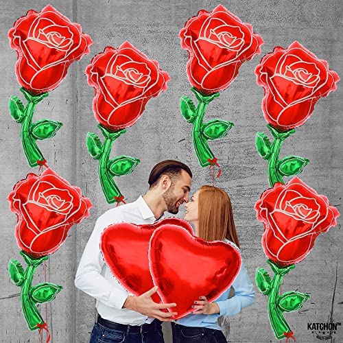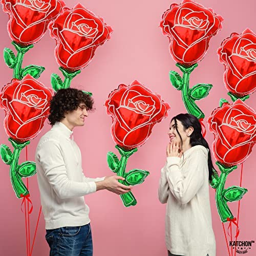 Big Rose Flower Balloon, 37 Inch – Pack of 6 | Valentines Day Balloons for Valentines Day Decor | Rose Balloons, Romantic Decorations Special Night | Flower Shape Balloon, Valentines Day Decoration