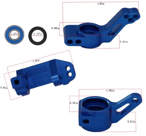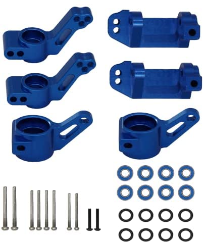 Caster steering block kit features: Material:Aluminum Alloy Color:Navy Blue Package Included: 2 x Steering blocks(L/R) 2 x Caster blocks(L/R) 2 x Stub axle carriers(L/R) 8 x 5x11x4mm bearings 6 x Suspension Screw Pins 4 × Gasket 2 x Screws Suitable for:Traxxas 1/10 Slash 2WD ,1/10 Stampede 2WD,1/10 Rustler 2WD,Bigfoot 2WD,1/10 Nitro Slash 2WD,1/10 Ford F-150 Raptor RC vehicle only. Note: 1:Check your specific models manual for compatibility,or Contact us. 2:The color of the item may vary slightly due to photography and your own computer /Phone.