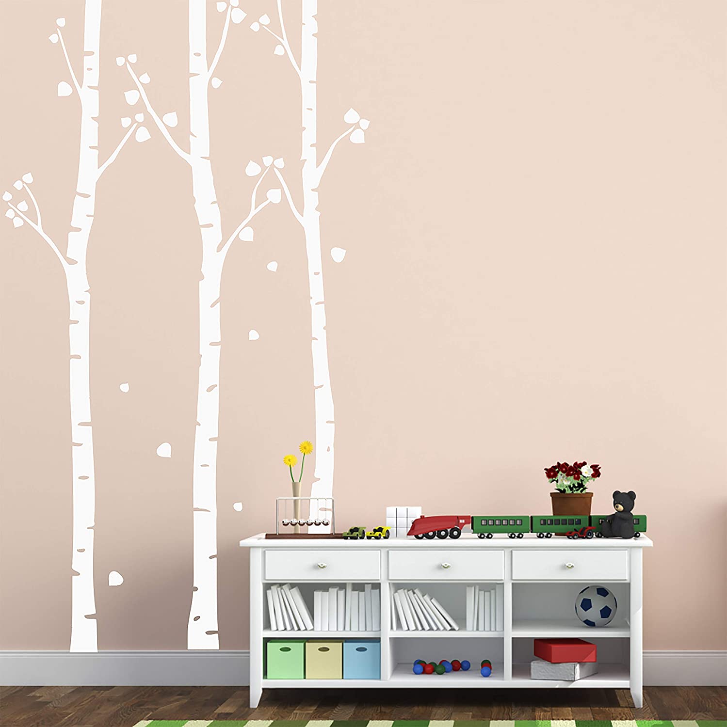 Birch Tree Wall Decal Nursery Set Woodland Vinyl Sticker Removable Branches Art Leaves (3 Trees) #1505 (96