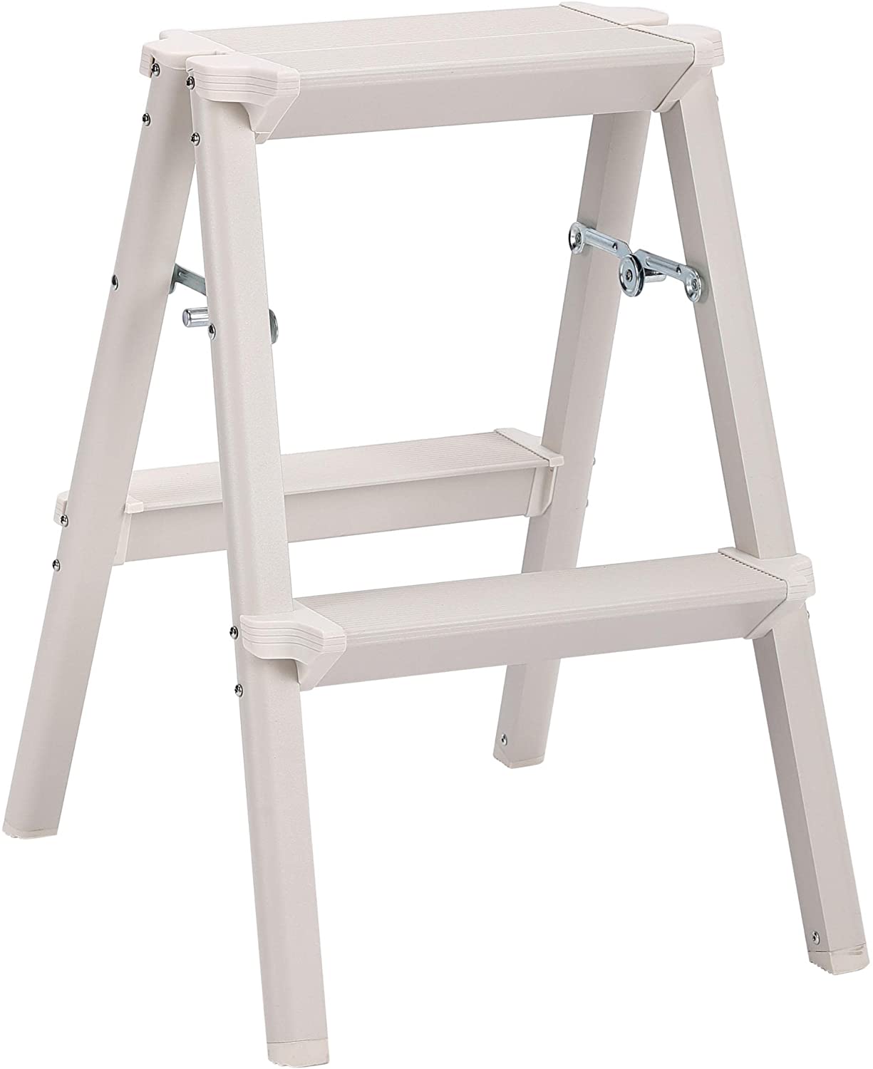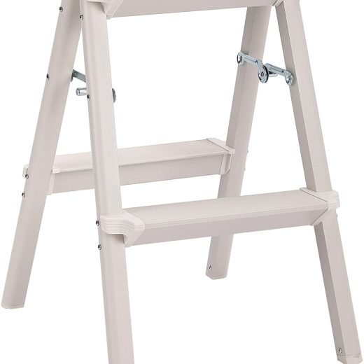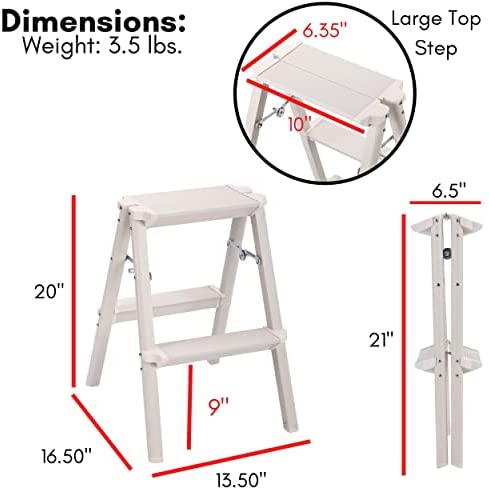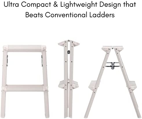 PORTABLE & SLIM: designed to be the perfect step ladder for assisting with projects around the house or merely reaching high shelves in your kitchen pantry, closet, or garage. The lightweight design (3.5 lbs.) allows you to move the ladder with ease from project to project. Once youre finished, the ladder easily folds up and stores away NON-SLIP STEPS: features rubber tread on each step, so youre able to climb up the ladder with confidence. The top features additional tread, along with a wide surface area, giving you a safer and stable experience than conventional ladders BEAUTIFUL DESIGN: the step ladder was thoughtfully designed with unique slim profile giving it a stunning contemporary look, so you no longer have to worry about hiding it away after your done using it STRONG & STABLE: constructed out of high-grade steel allowing the ladder to have a smaller footprint than conventional ladders without compromising on stability and safety. The features a locking mechanism that securely locks the ladder in the open position. The step ladder has been rigorously tested for weight capacity and safety conforming to ANSI standards 225 POUND CAPACITY. Load Weight Capacity: 225 lbs. (ANSI Standard – Heavy Duty II) FULLY ASSEMBLED