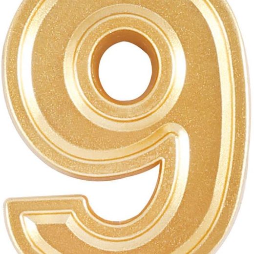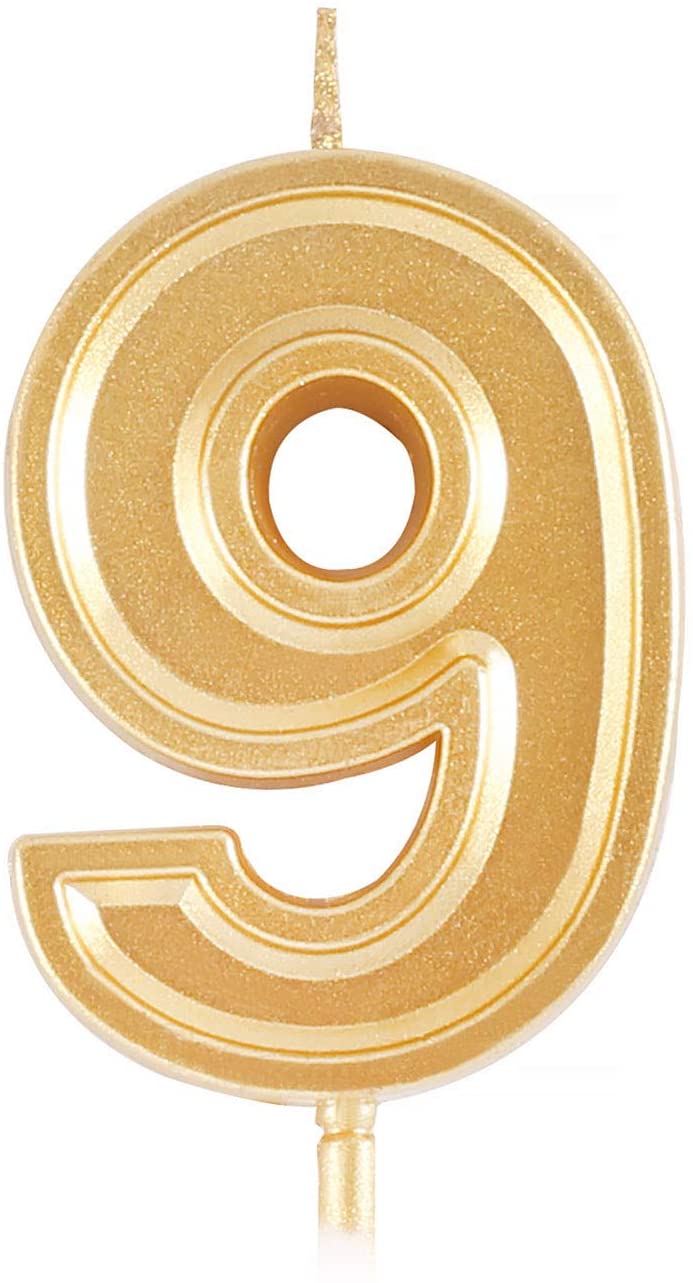 Birthday Cake Candle Number 9, Golden Glitter Numeral Topper Decoration for Wedding Anniversary, Kids and Adults Party Celebration (9)