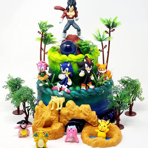 Birthday Celebrations Sonic and Friends Video Gaming Birthday Cake Topper Set with Random Sonic and Other Iconic Gaming Characters