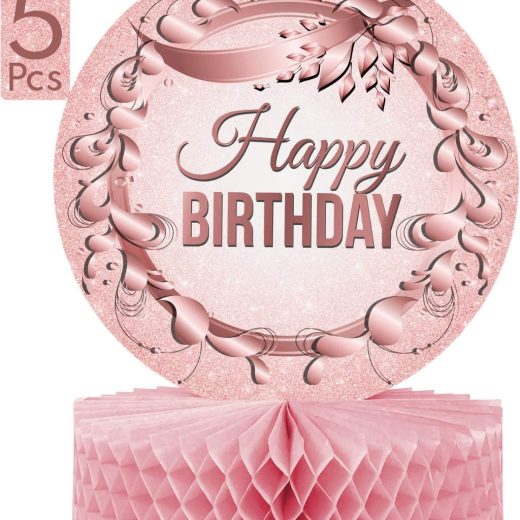 Birthday Table Centerpiece Decorations – 5-Pack Double Sided Cardstock & Tissue Paper Honeycomb Happy Birthday Decoration – 12u201d Pink & Rose Gold Birthday Party Decorations Centerpieces