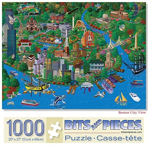 Boston City View is a 1000 piece jigsaw puzzle designed by Joseph Burgess. Our Jigsaw Puzzles are made with recycled cardboard. Die-cut puzzle pieces are easy to handle – and no two are alike. Our 1000 Piece Puzzles are exciting and challenging to put together. Bits And Pieces exceptional jigsaw collection provides original and intriguing gifts for any interest, age or ability. Puzzle Size is 20 x 27 when completed.
