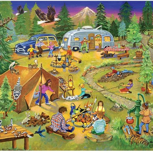 Camping with Grandma and Gramps is a 1000 piece jigsaw puzzle designed by Sandy Rusinko. Our Jigsaw Puzzles are made with recycled cardboard. Die-c…